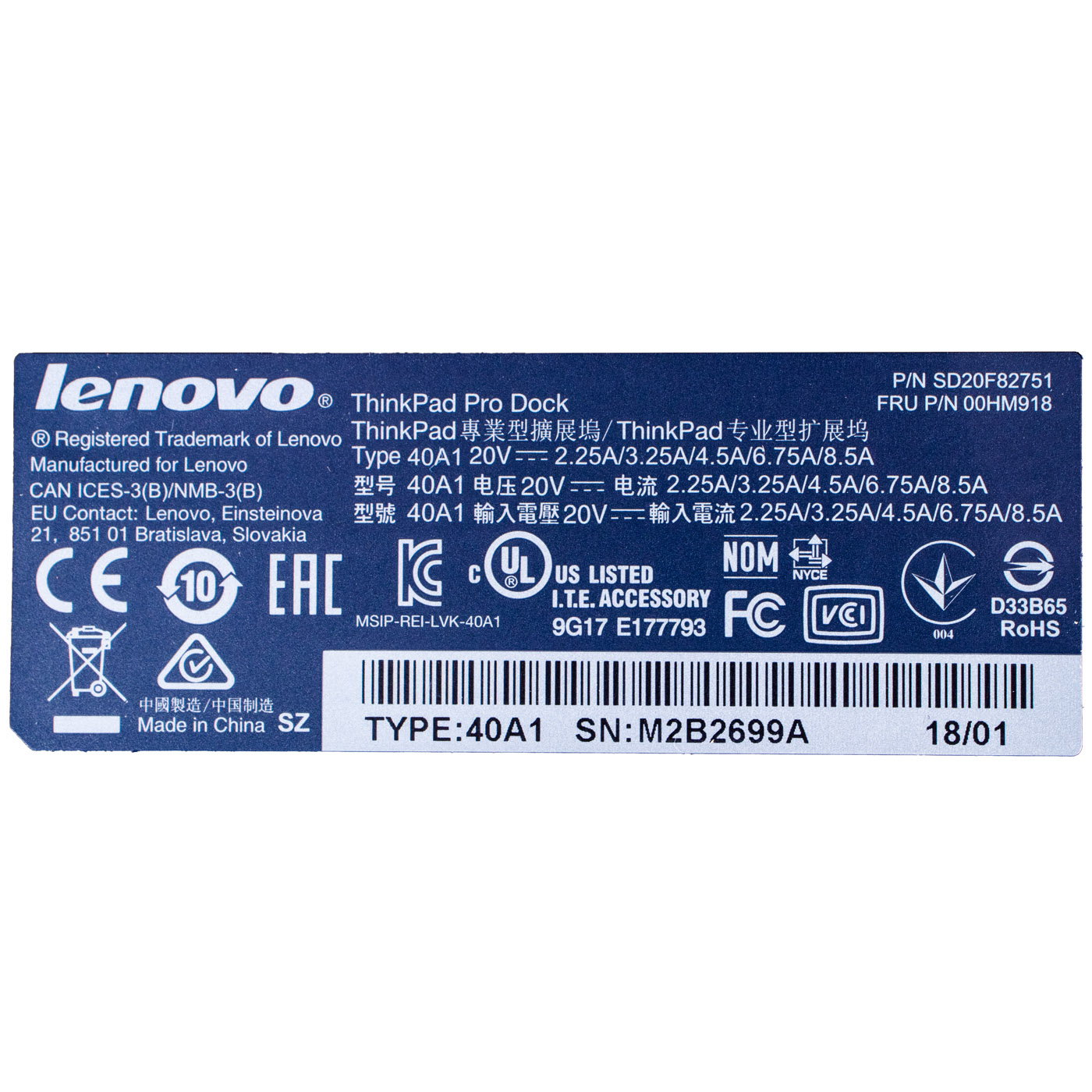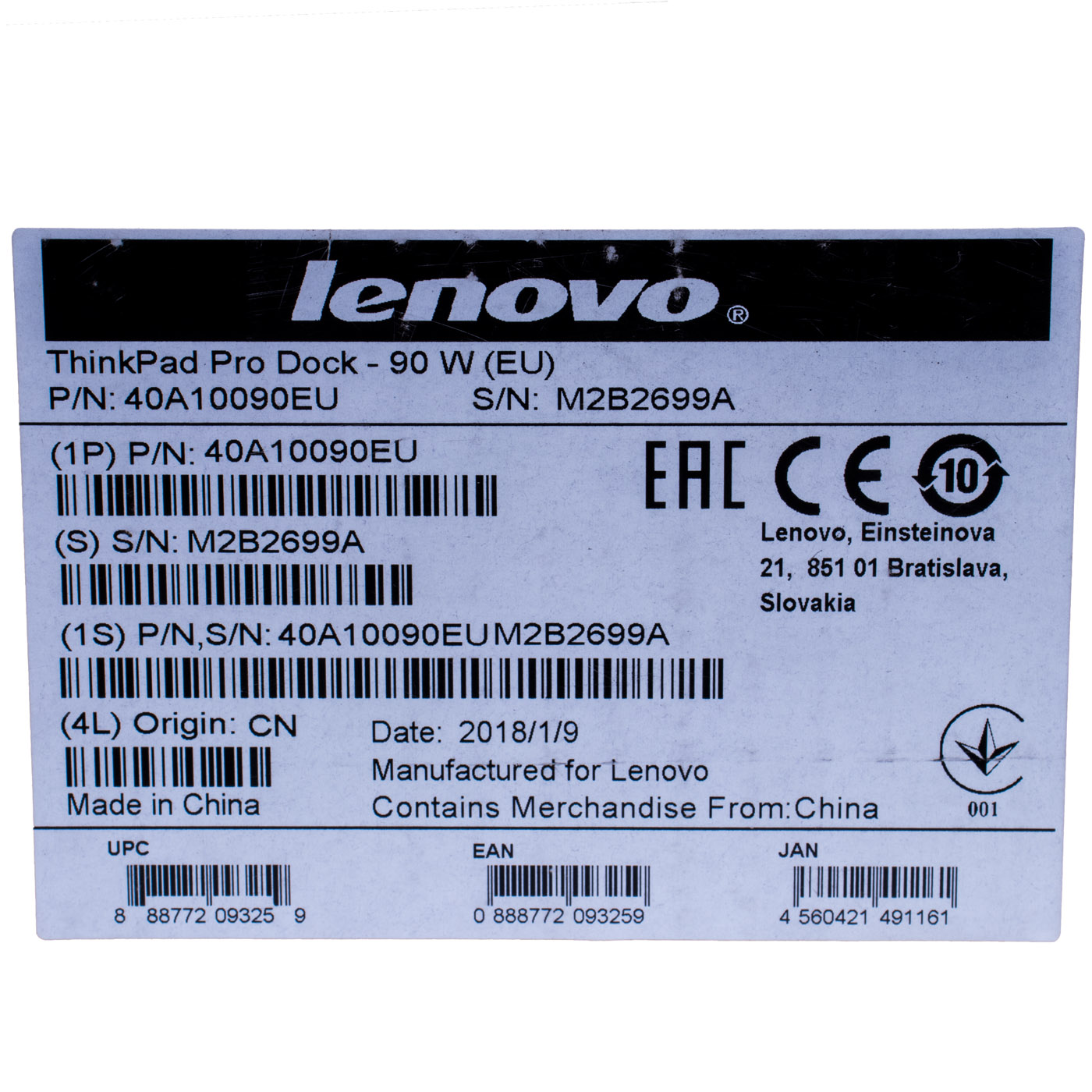 Model | ThinkPad Pro Dock , type 40A1009EU 90W |